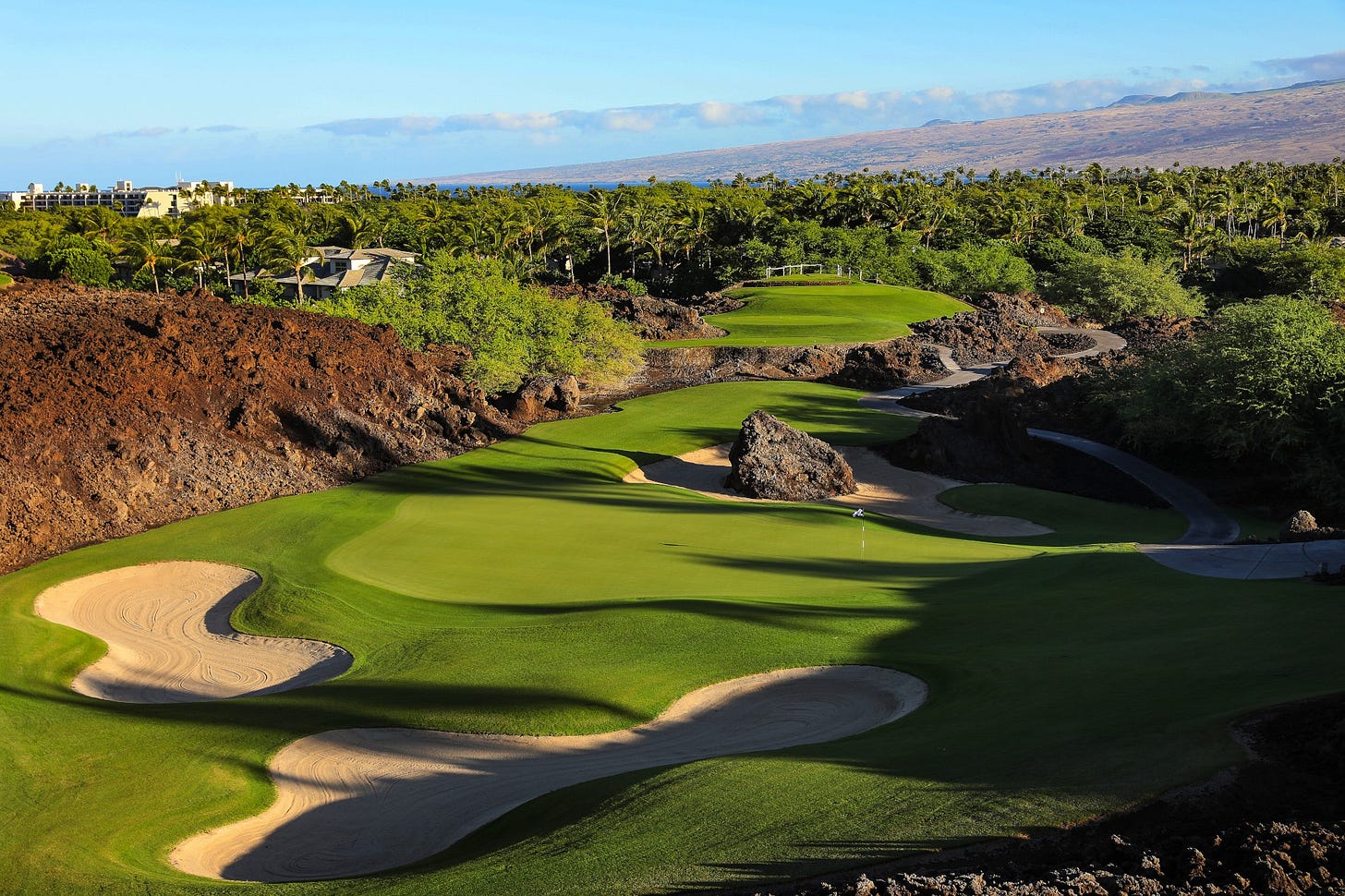 Tournament rounds began with an early shotgun start—usually at 7 a.m.—and the mornings were truly something special. Waikoloa’s practice facilities are compact, so the range and putting green were always packed at sunrise. There’s a certain magic to seeing the course come alive in those early hours.